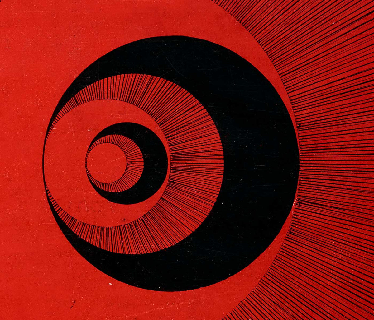 Hulusi Mercan · 1960 · Energetic abstract poster of musical instruments with bold red blue and yellow shapes